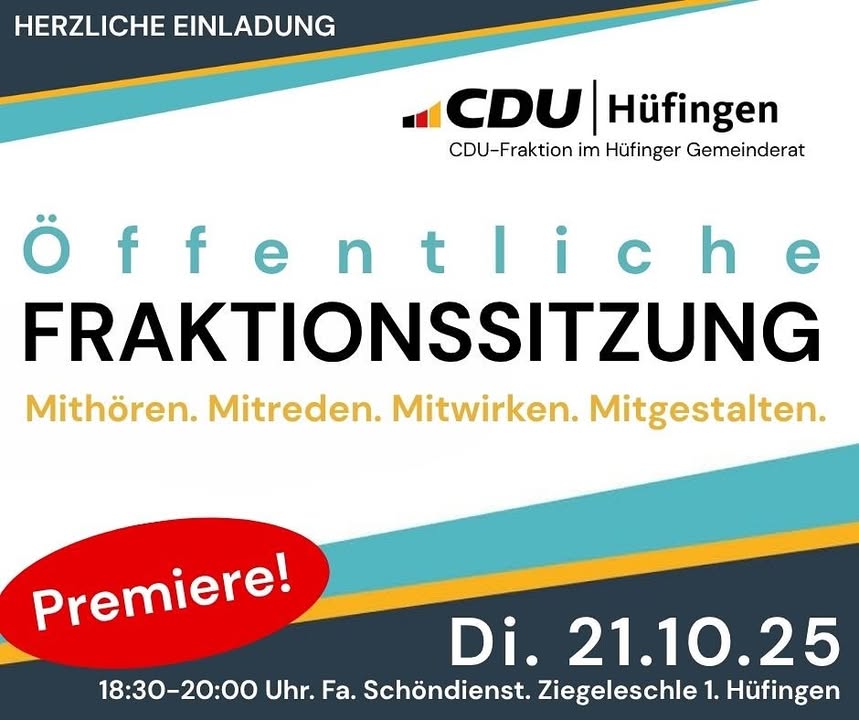 *Herzliche Einladung zu unserer allerersten öffentlichen Fraktionssitzung!*Wir würden uns freuen, wenn wir super viele Interessierte begrüßen dürften!#cdu #cduhüfingen #hüfingen #hüfingenimmerwaslos #mundelfingen #behla #fürstenberg #sumpfohren #hausenvorwald
